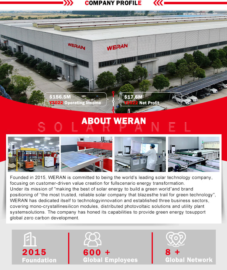 WERAN WR5-72HTH 시리즈 태양광 패널은 상업용 및 주거용 프로젝트용으로 설계되었으며 고급 HBPC 기술을 활용하여 부스바를 제거하고 미적 측면과 효율성을 모두 향상시켰습니다. 당사의 제품은 CE, TUV 및 CSA와 같은 여러 인증을 획득했으며 최대 15~30년의 애프터 서비스를 제공합니다.